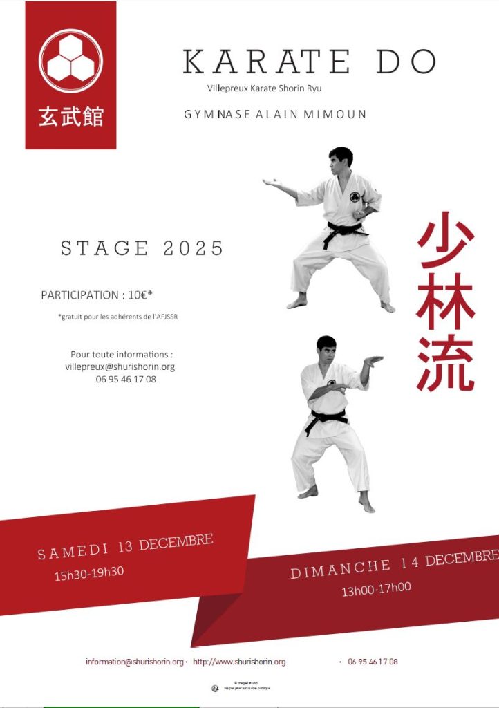 Stage Karaté à Villepreux – 13 et 14 décembre 2025 Posté le 30 novembre 2025 par ed ition L’Association de Karaté de Villepreux organise un stage le week-end de 13 et 14 décembre 2025 Affiche stage Villepreux – Décembre 2025 Venez nombreux !